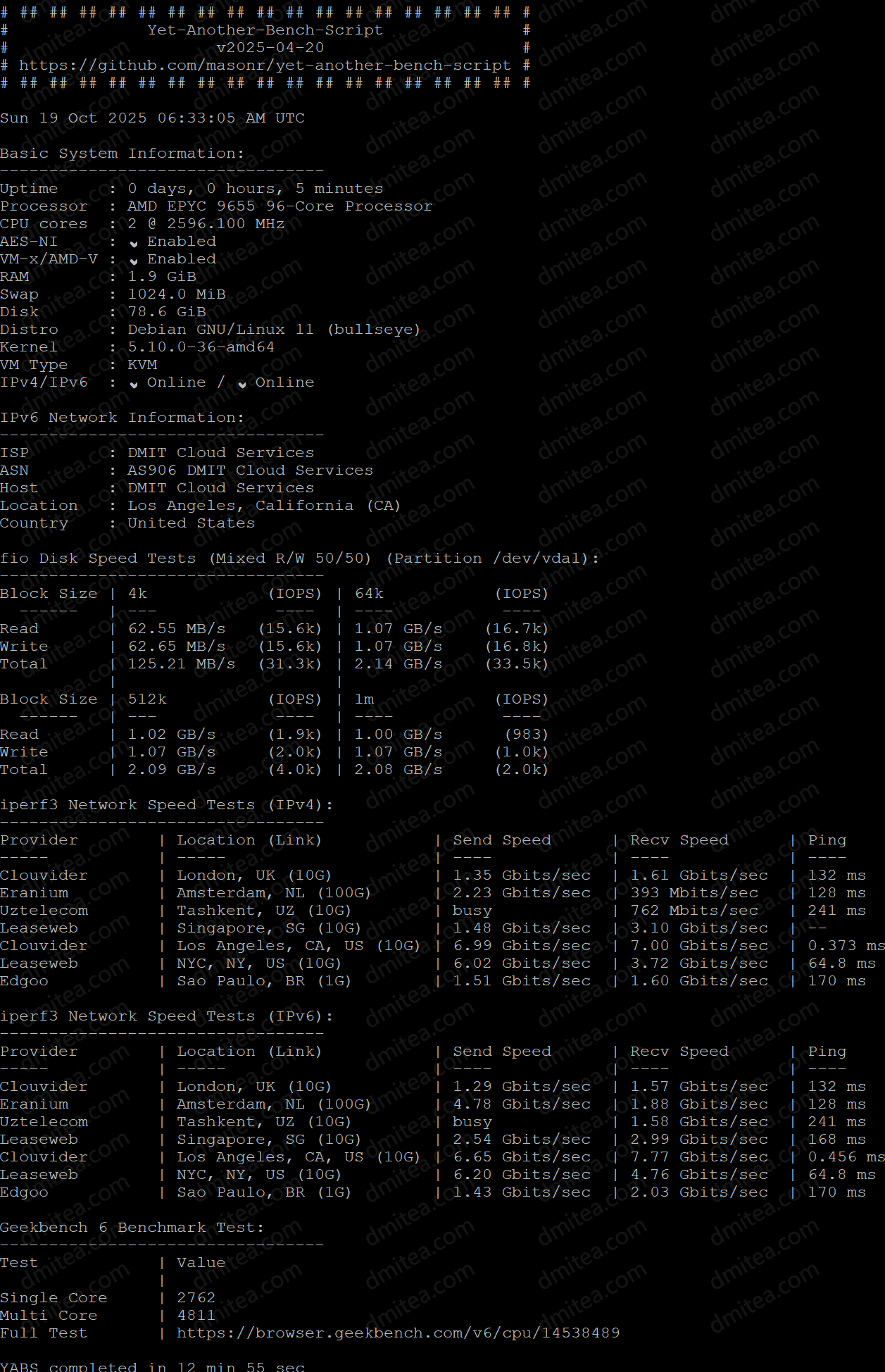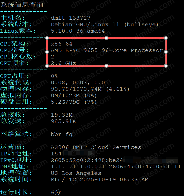 [美国VPS] 全网首家测评--DMIT大妈新平台CPU--LAX.AN4.Pro.STARTER