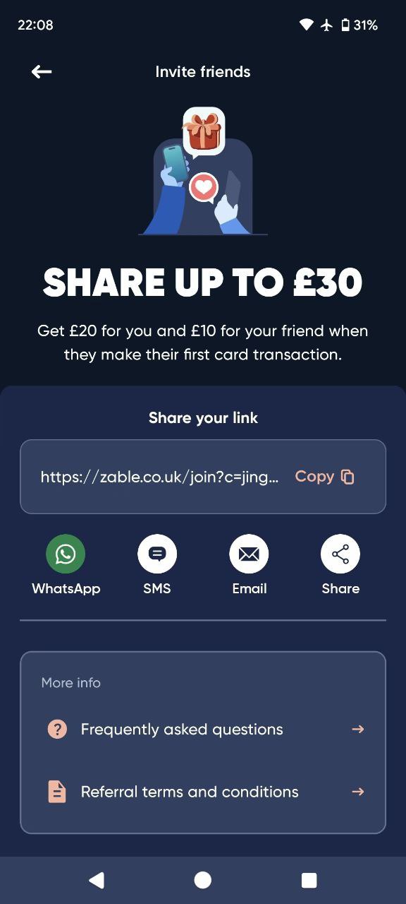 [经验] Zable 英国信用卡,羊毛送20英镑!