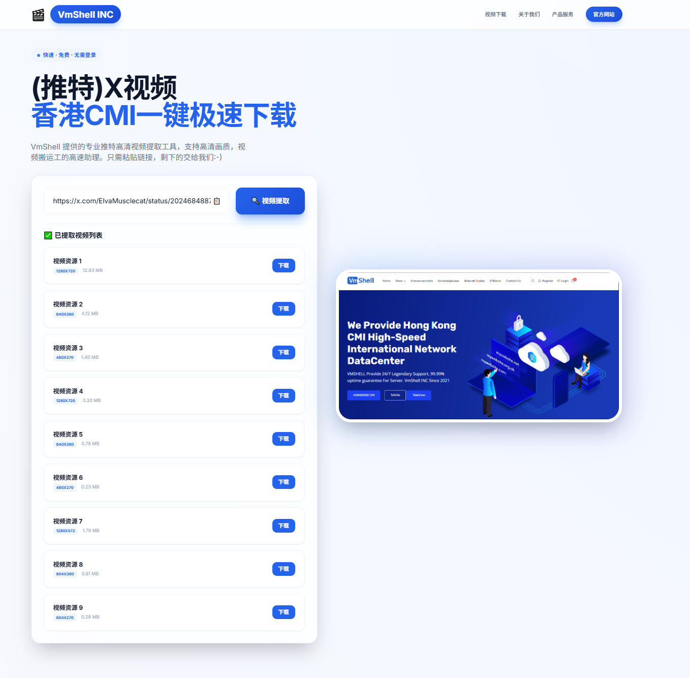 VmShell (推特)X视频一键极速下载网址,推特视频下载测试网址:https://x.linuxword.com/
