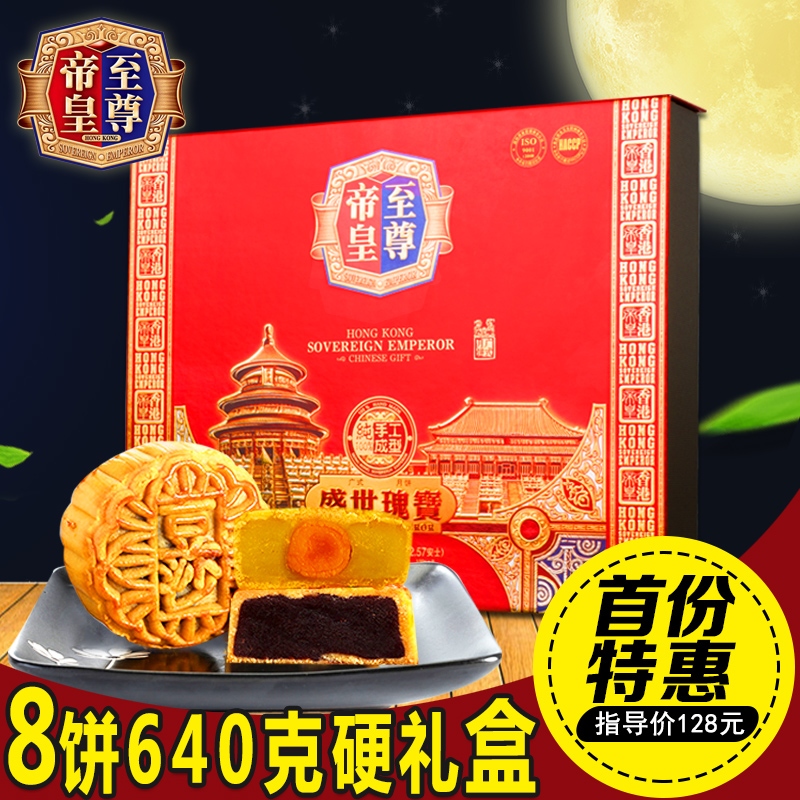 【中秋月饼礼盒 香港至尊帝皇 广式蛋黄莲蓉 豆沙水果味 福利团购】