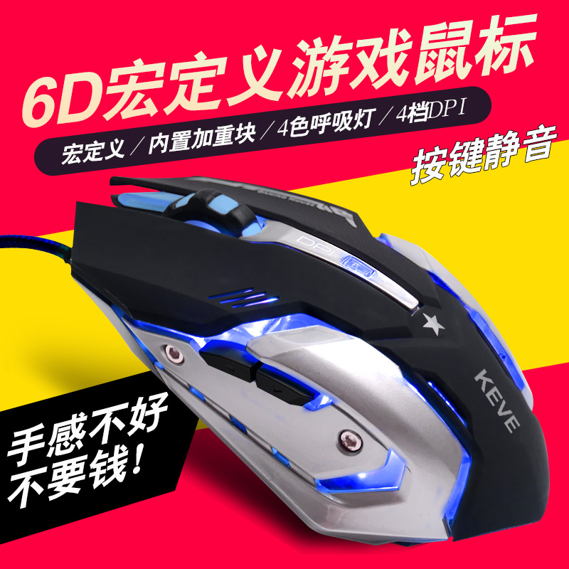 【金属底盘 4色呼吸灯 牧马人3机械加重电竞无声静音有线宏鼠标游戏】