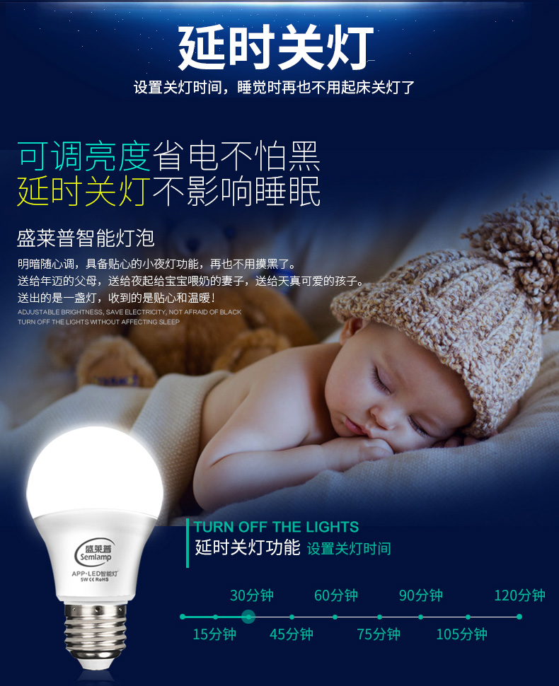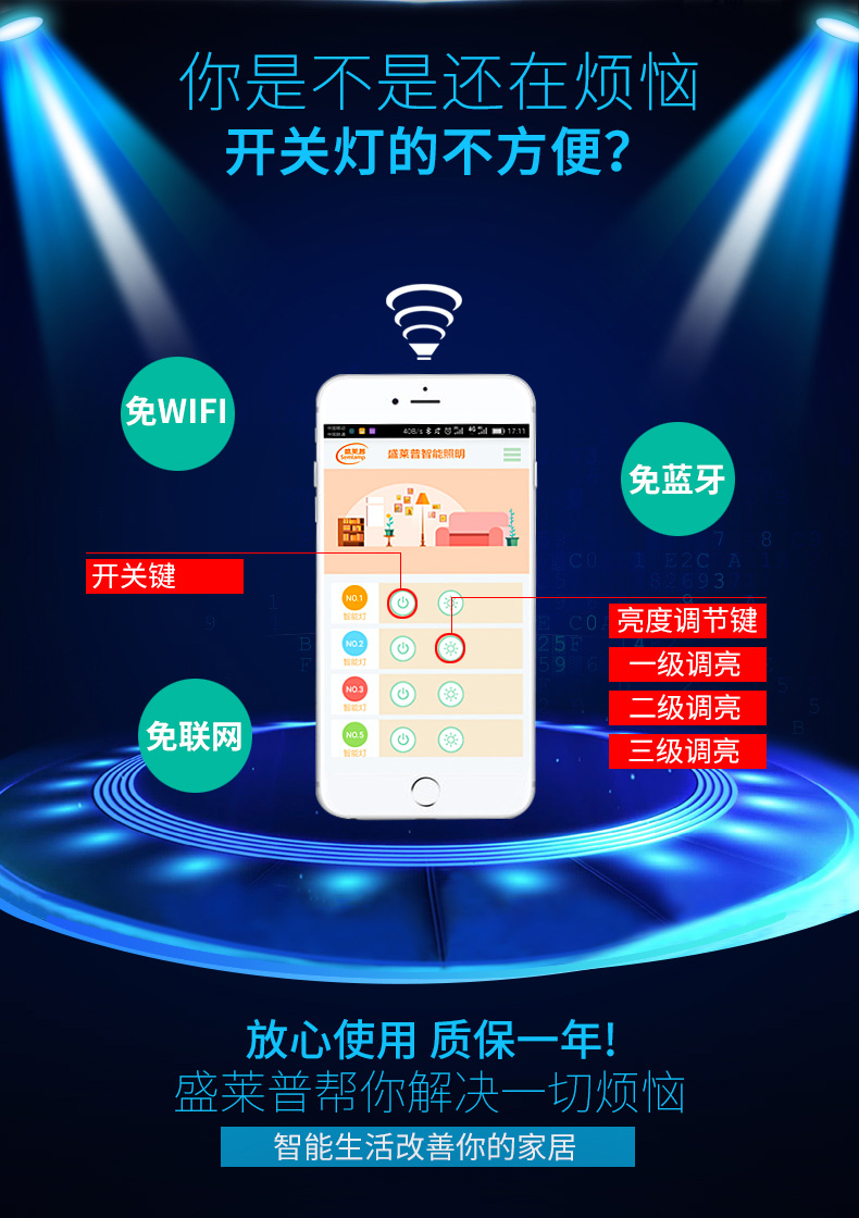 盛莱普 智能遥控LED灯泡手机无线控制免WiFi蓝牙卧室节能灯照明