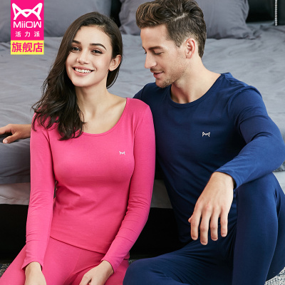 猫人保暖内衣男女士薄款美体秋衣秋裤女纯棉套装棉毛衫情侣全棉【包邮】