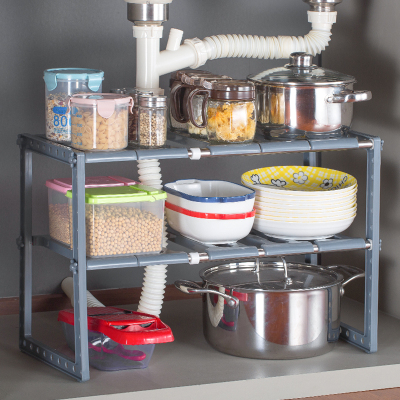 下水槽置物架橱柜落地多层可伸缩多功能锅架不锈钢厨房沥水收纳架【包邮】