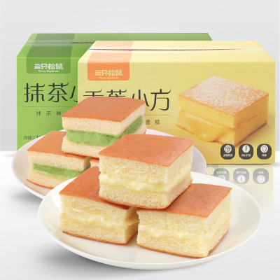【三只松鼠_小方蛋糕750g】抹茶夹心糕点心办公室早餐面包一斤半【包邮】