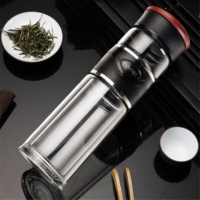 恩尔美茶水分离泡茶杯双层玻璃杯创意随手耐热过滤男女水杯子便携【包邮】