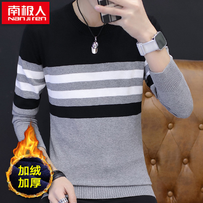 南极人2018秋冬新款男士加绒加厚圆领时尚毛衣男韩版修身休闲秋冬【包邮】
