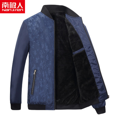 南极人秋冬新款夹克外套时尚立领花纹中年爸爸装加绒加厚男装HJ【包邮】