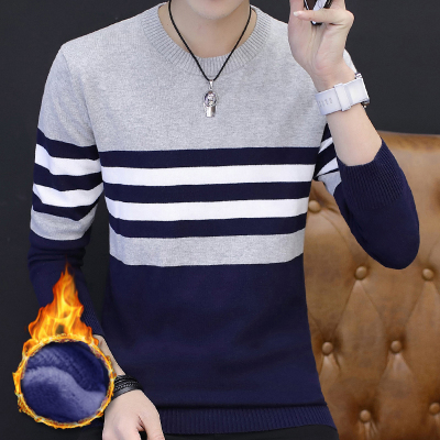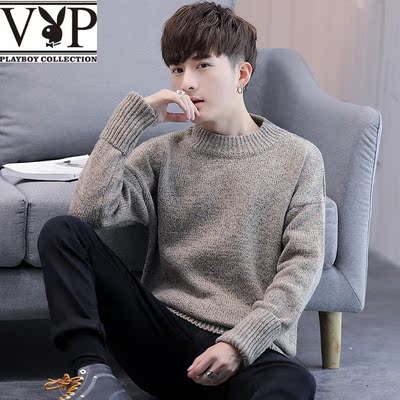 加绒毛衣男2018冬季新款男士毛衣韩版修身休闲保暖圆领针织衫男【包邮】