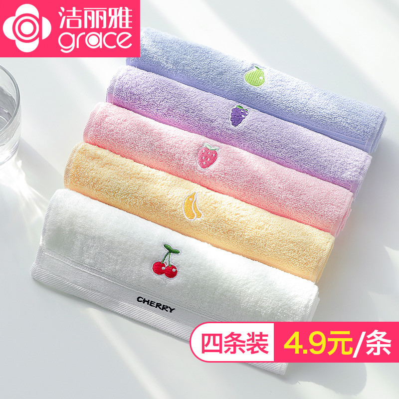 洁丽雅儿童毛巾 洗脸 纯棉童巾4条装 可爱卡通宝宝柔软吸水小毛巾【包邮】
