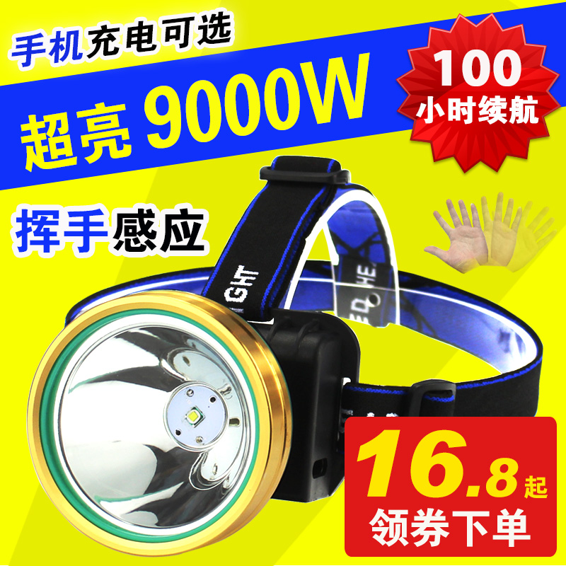 LED头灯强光充电感应矿灯夜钓鱼头戴式防水超亮手电筒米疝气3000【包邮】