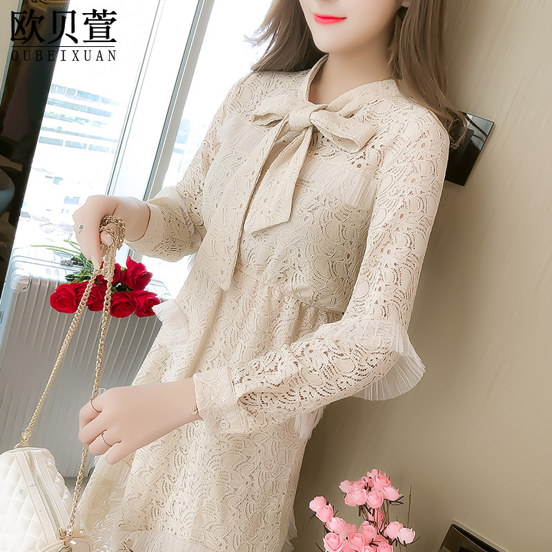 商品名称:2019春装新款韩版女勾花镂空针织衫圆领长袖蕾丝钉珠薄款纯色毛衣