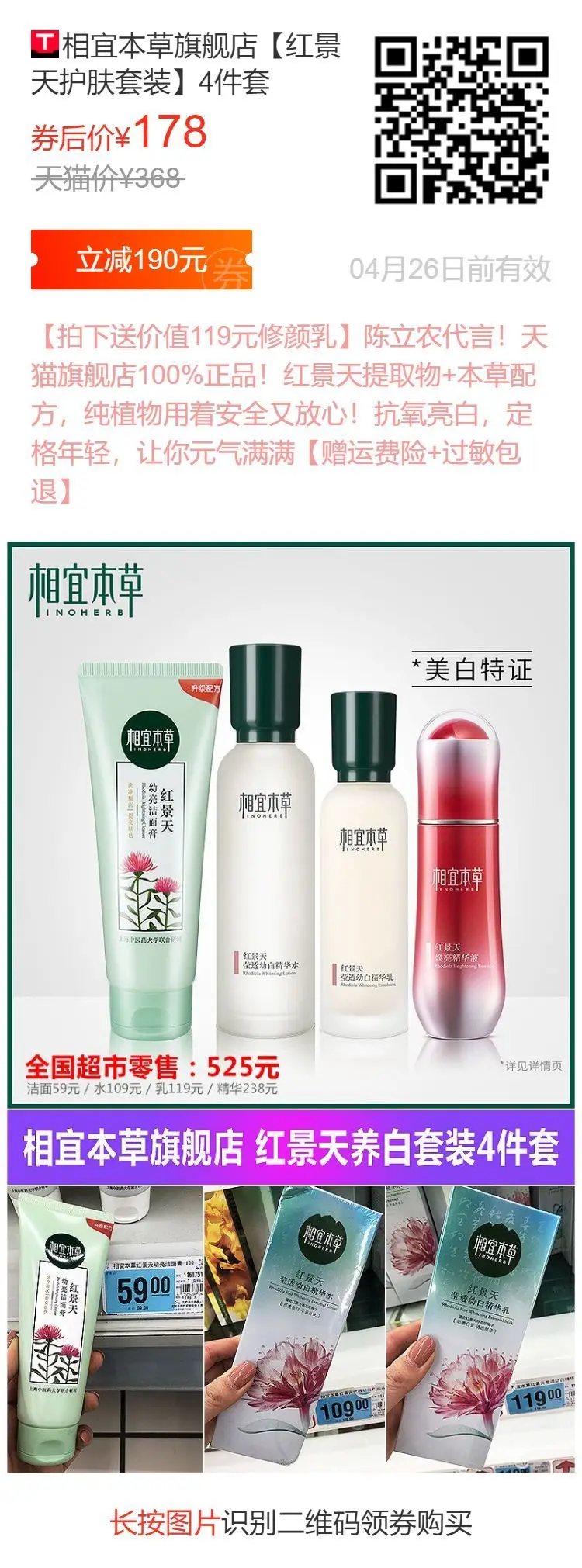 推荐:相宜本草旗舰店【红景天护肤套装】4件套【178】秒杀