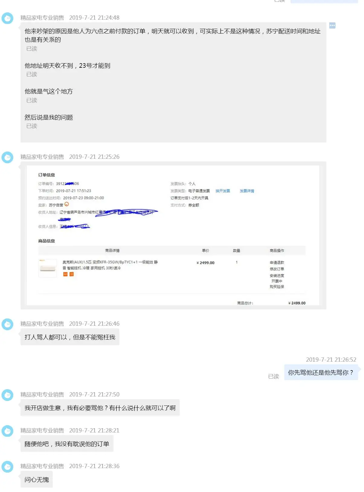 第二次的截图虽然你故意截取的不清晰,但还是看得出来是19:45之后的聊天记录,关键的19:41:33 到19:43:08的聊天记录还是不敢截取出来.