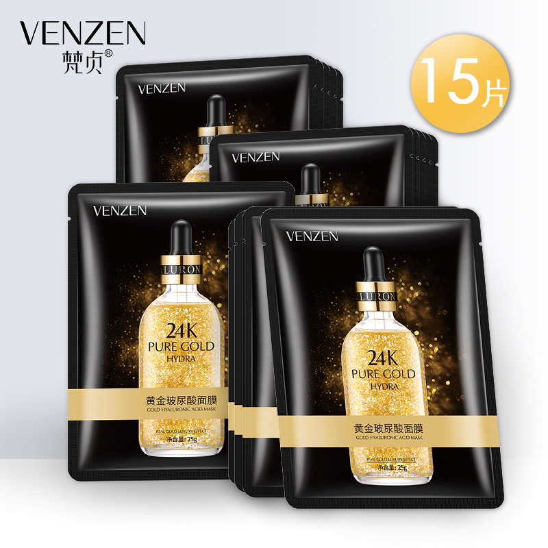 【商品名称】:15片丨梵贞24K黄金玻尿酸面膜贴补水保湿提亮肤色收缩毛孔学生女
