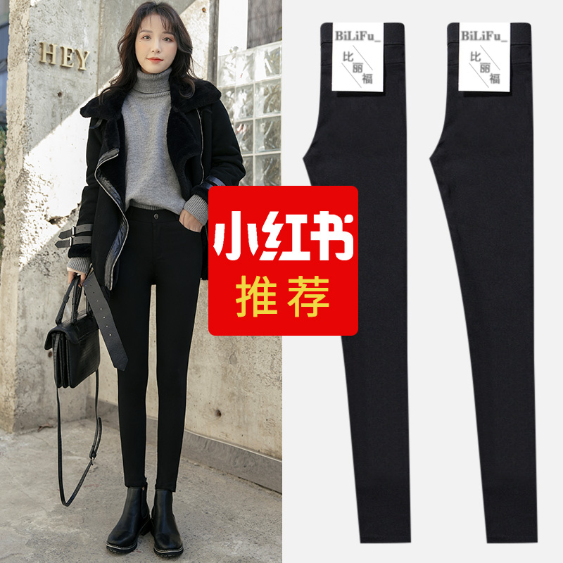 【商品名称】:魔术黑色打**女裤外穿秋冬季加绒加厚小脚2019新款高腰显瘦百搭