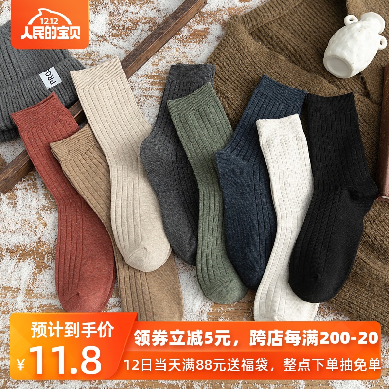 【商品名称】:加厚袜子女冬季日系加绒黑色中筒袜ins潮百搭冬天保暖毛圈袜纯棉