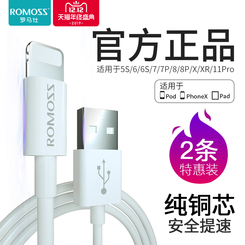 【商品名称】:罗马仕iPhone6s苹果数据线 iphone5s/6/7/8 ipad快充手机通用数据线苹果短闪充电线XS 7Plus加长冲电线正品