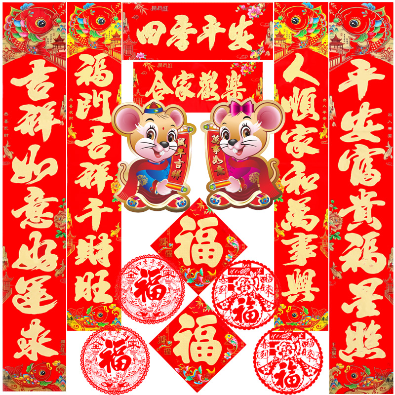 【商品名称】:2020鼠年春联过年大礼包春节对联卡通创意大门福字门贴纸新年装饰