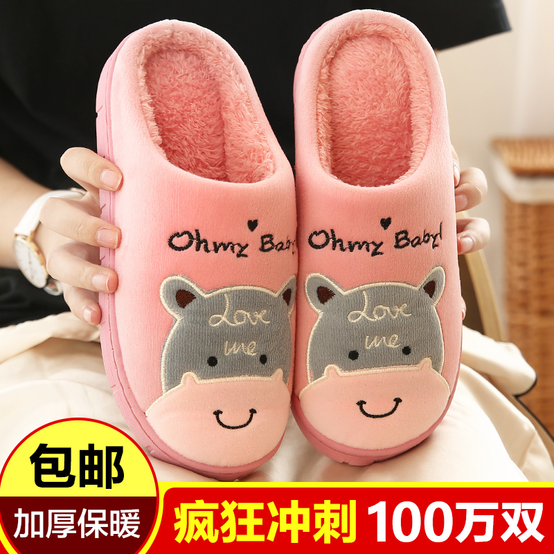 【商品名称】:芯灯绒棉拖鞋女包跟冬季情侣居家室内厚底防滑毛绒保暖新款月子鞋